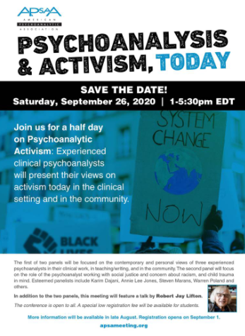Psychoanalysis & Activism Saturday, September 26, 2020 from 1-5:30 p.m.