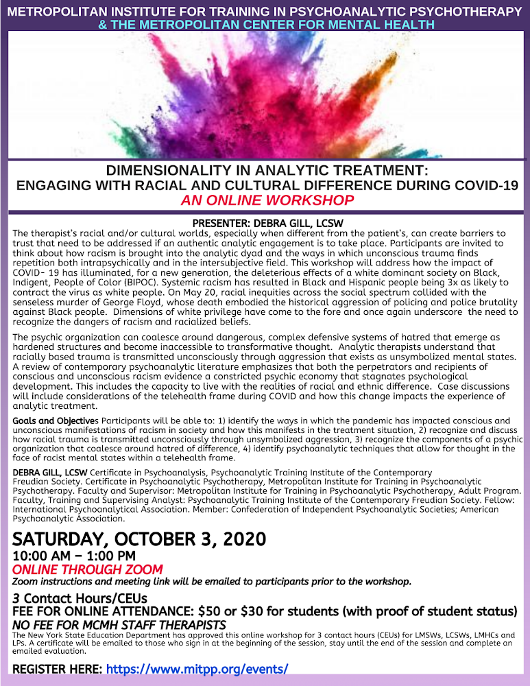 Dimensionality in Analytic Treatment: Engaging with Racial and Cultural Difference During COVID-19