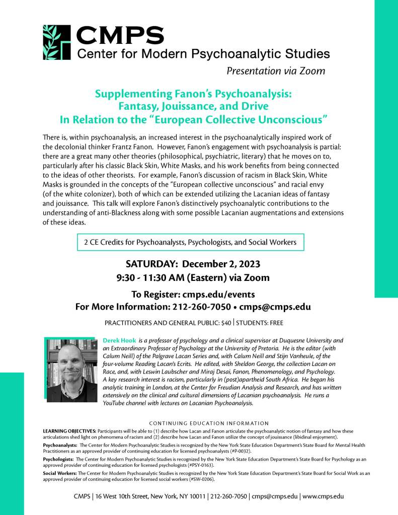 Supplementing Fanon’s Psychoanalysis: Fantasy, Jouissance, and Drive in Relation to the “European Collective Unconscious” – Via Zoom