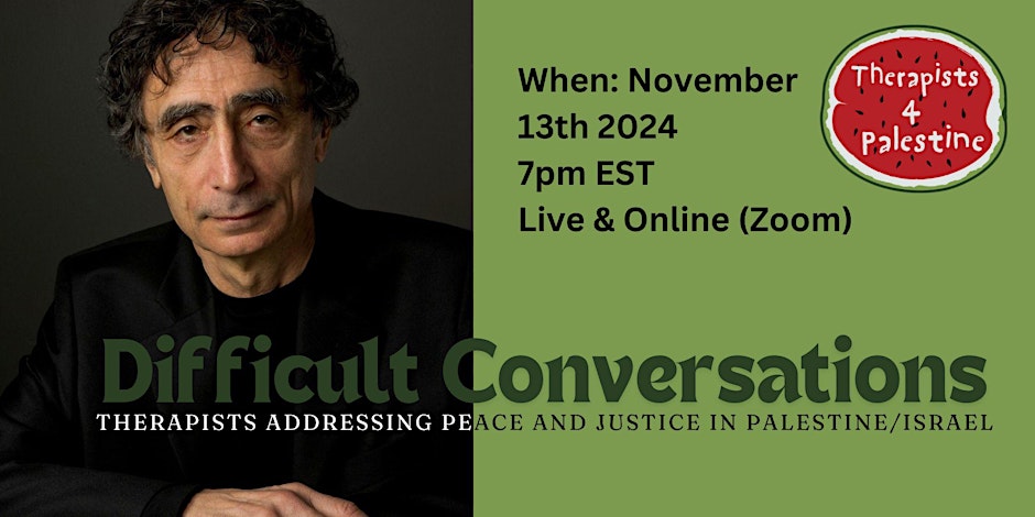 Join Gabor Maté M.D. for a Live Talk & Q&A exploring what therapists’ responsibility is to the global atrocities happening in the world.
